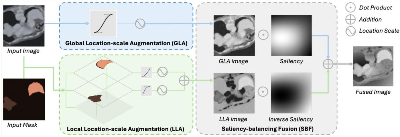 如图[1]所示,原本清晰标准的腹部扫描图(Input Image),经过这套“全局+局部”的增强算法处理后,变成了各种“光怪陆离”的样子(GLA image / LLA image)。