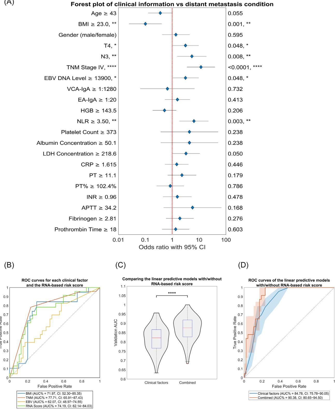 虽然新发现的基因评分表现不俗,但研究团队并没有打算“喜新厌旧”,抛弃传统的临床指标。相反,他们发现BMI(身体质量指数)、TNM分期和血浆EB病毒DNA水平这三位“老将”依然拥有不可忽视的预测价值。